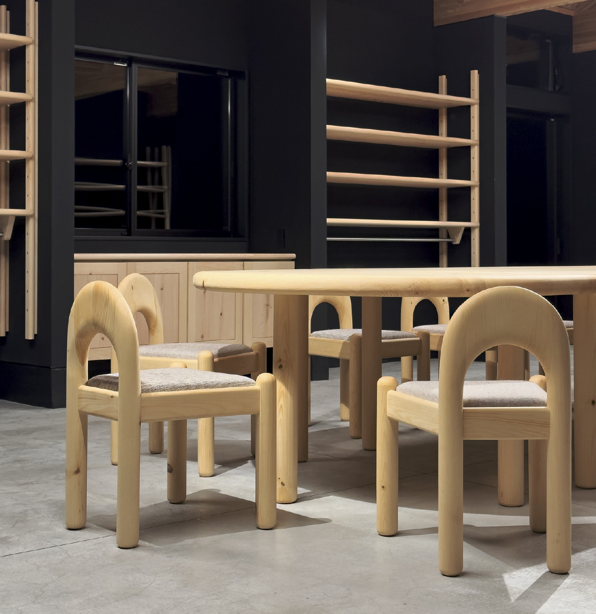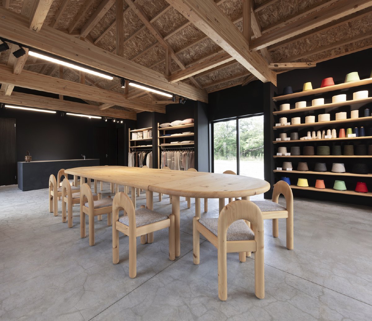 Interior design for ANYTHING LABO, a place where new fabrics are developed that are woven on shuttle looms that are about 100 years old.