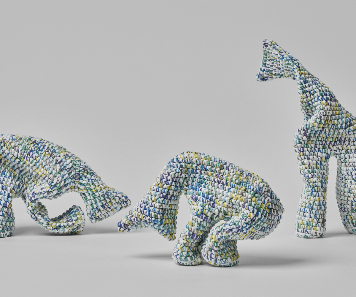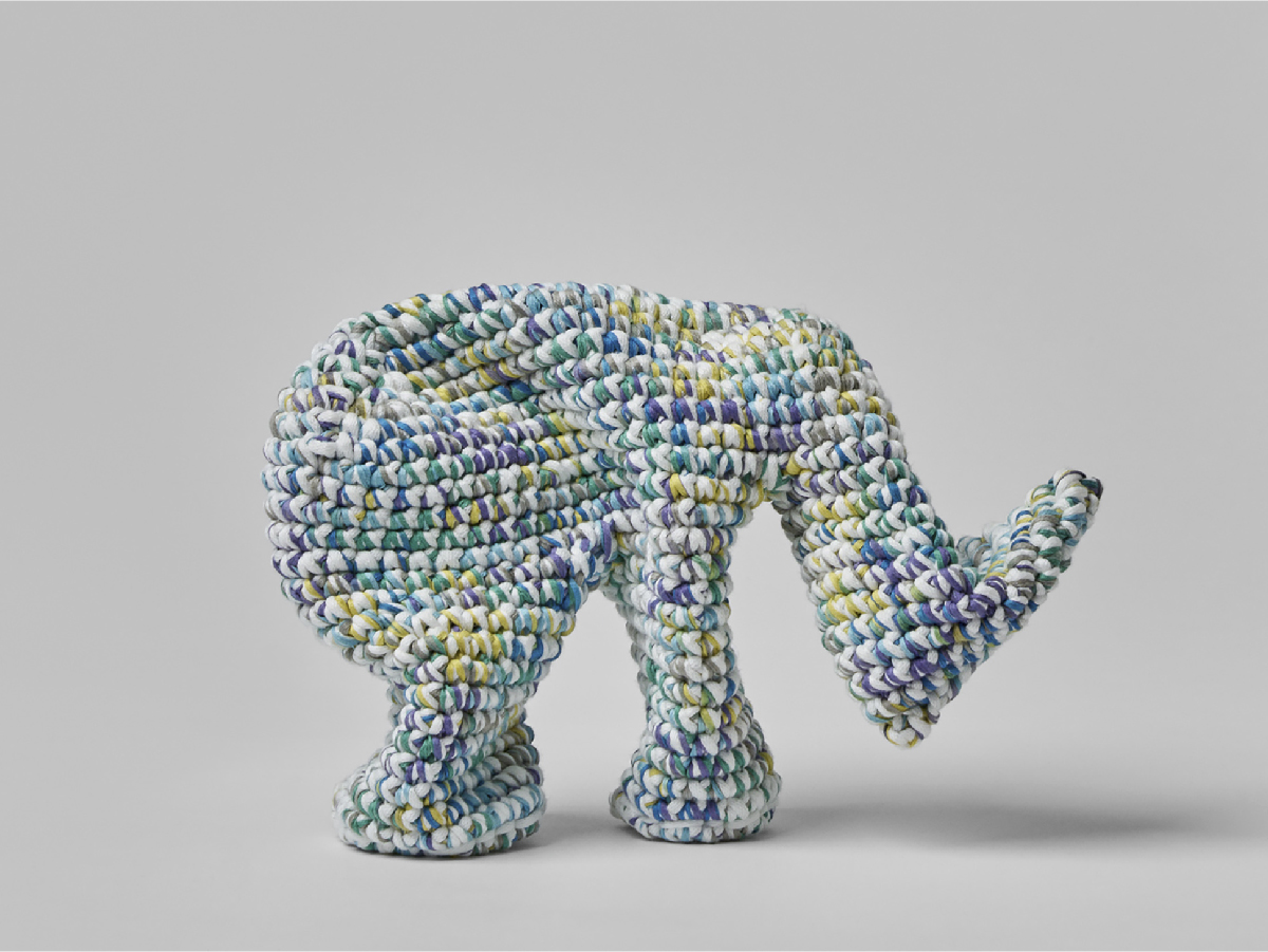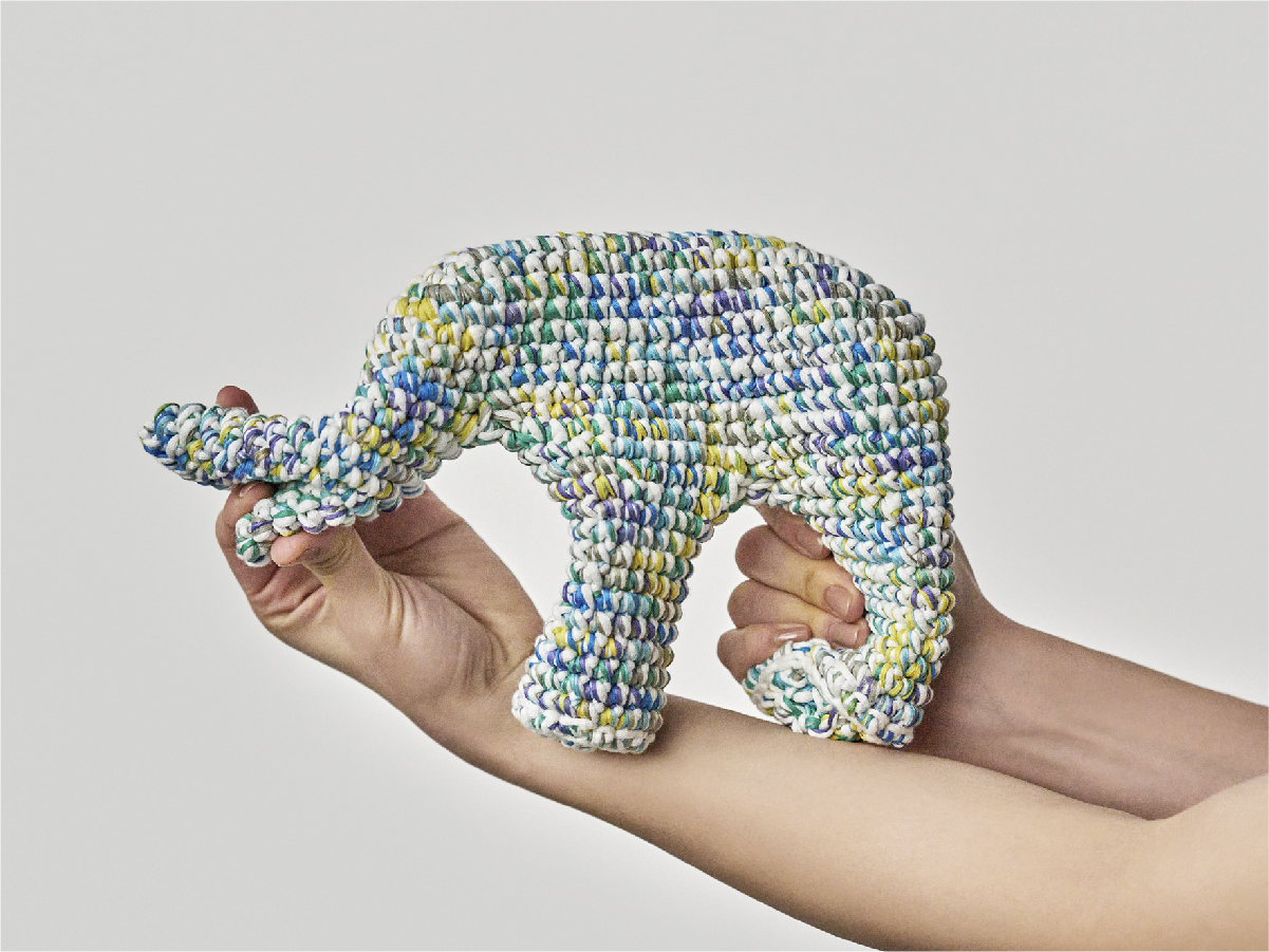 Characterized by a large nose, long neck, and cute botom,For the “I am” line of products, we mainly use a special, space-dyed cotton paralleled yarn with cushioning properties. Each product is crocheted carefully, one at a time, by skilled craftsmen. Unlike ordinary stuffed animals, “I am” have no cotton inside, due to the strength of crocheting and the properties of the material used.These features allow “I am” to be shaped into a variety of forms.Children might be able to transform them into a variety of things, beyond the imagination of adults. Adults might shape them into appealing decorations. And children might discover something new when they see these decorative shapes.From children to adults. From adults to children. You can use “I am” for non-verbal communication.That is the thought behind the design of "I am."