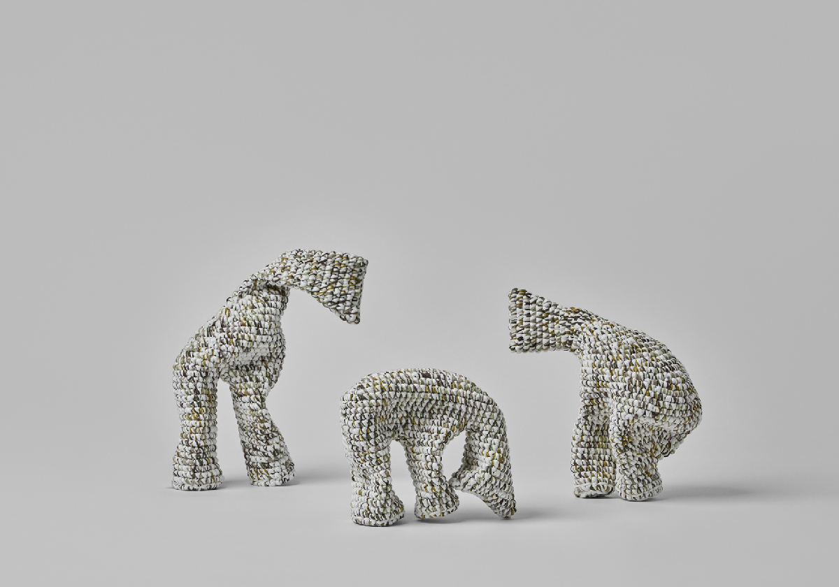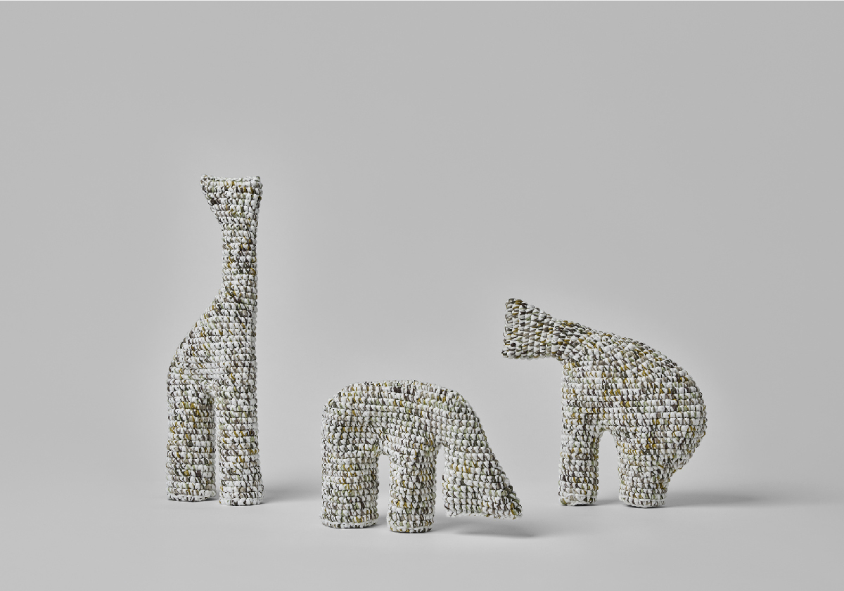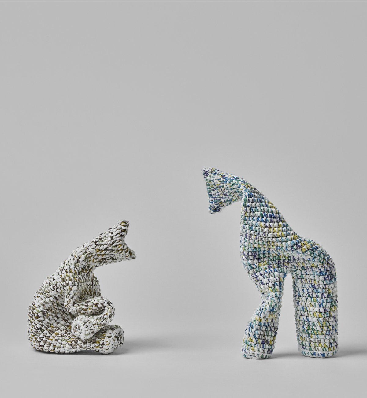 Characterized by a large nose, long neck, and cute botom,For the “I am” line of products, we mainly use a special, space-dyed cotton paralleled yarn with cushioning properties. Each product is crocheted carefully, one at a time, by skilled craftsmen. Unlike ordinary stuffed animals, “I am” have no cotton inside, due to the strength of crocheting and the properties of the material used.These features allow “I am” to be shaped into a variety of forms.Children might be able to transform them into a variety of things, beyond the imagination of adults. Adults might shape them into appealing decorations. And children might discover something new when they see these decorative shapes.From children to adults. From adults to children. You can use “I am” for non-verbal communication.That is the thought behind the design of "I am."