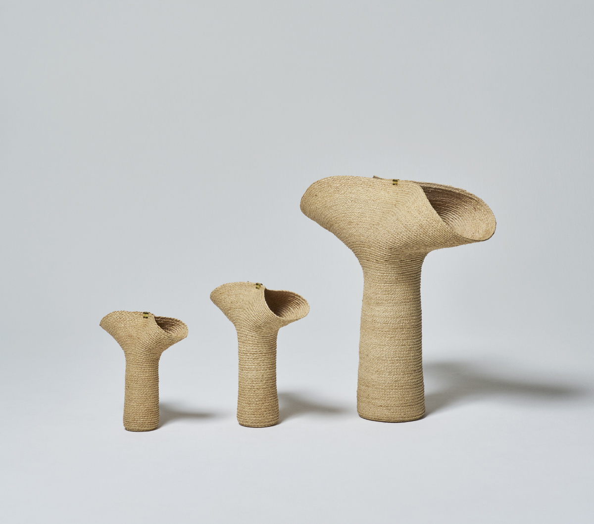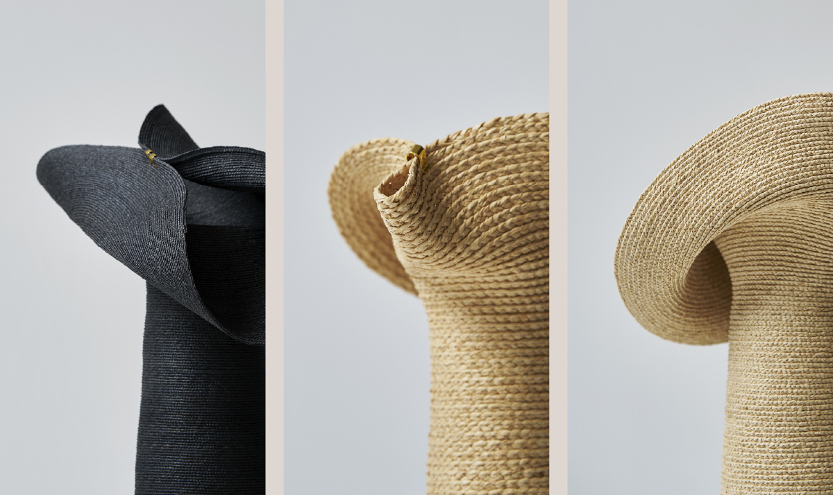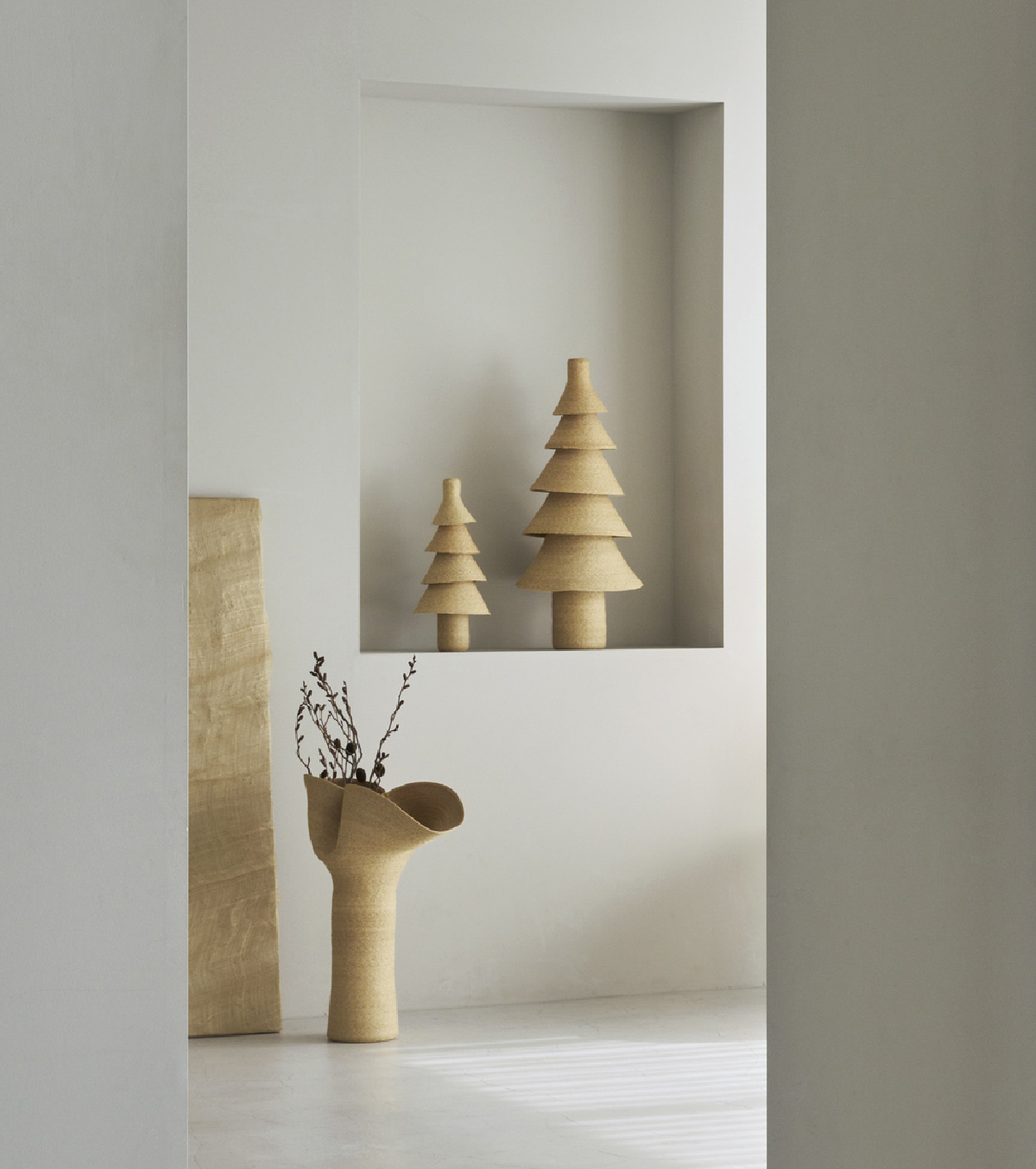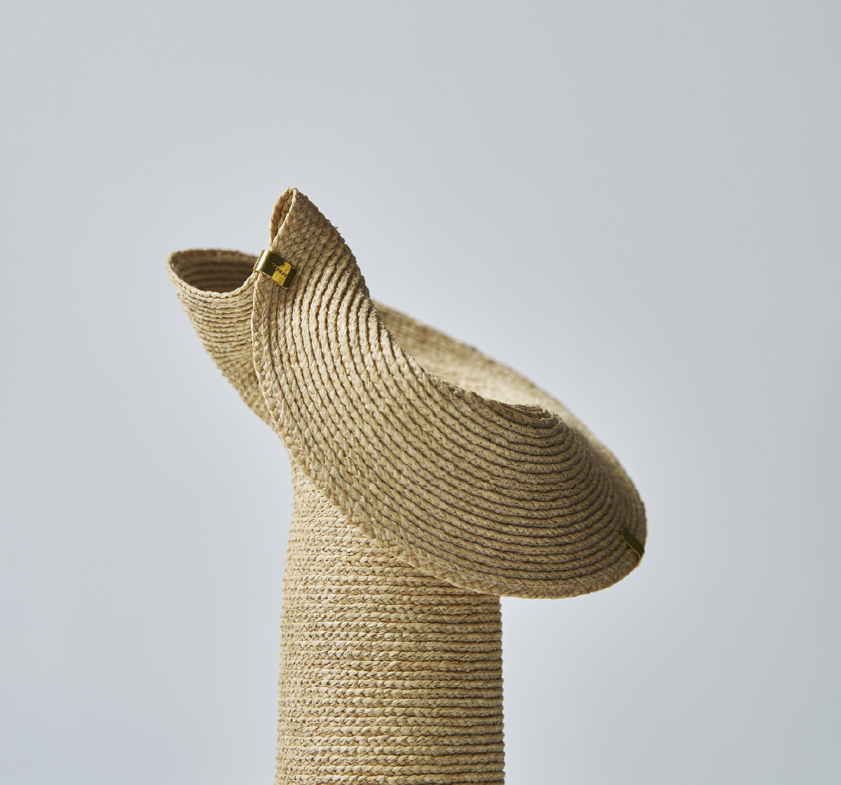 A series of raffia palms has been added to Lapel, which fixes collar to bring flowers to life. These rustic materials bring peaceful accents to your life. The natural color gives a gentle impression, while black gives a chic and mature impression. Rough emphasizes the materiality of raffia and brings a unique presence to your living environment.