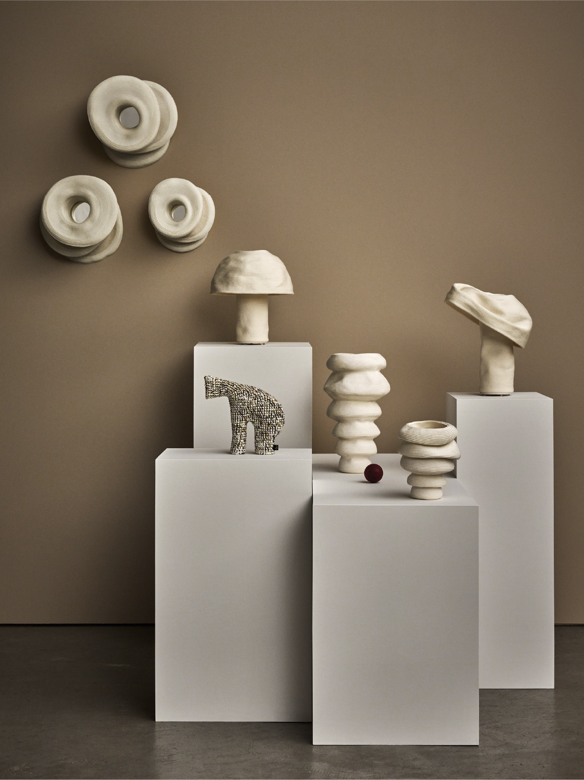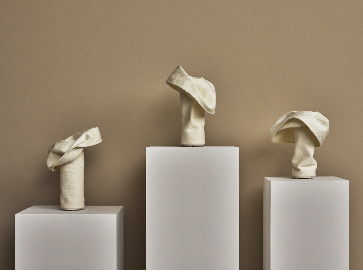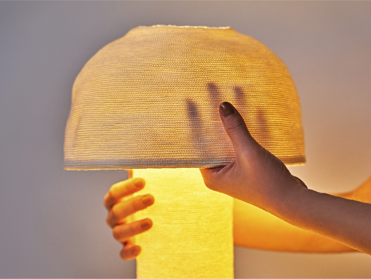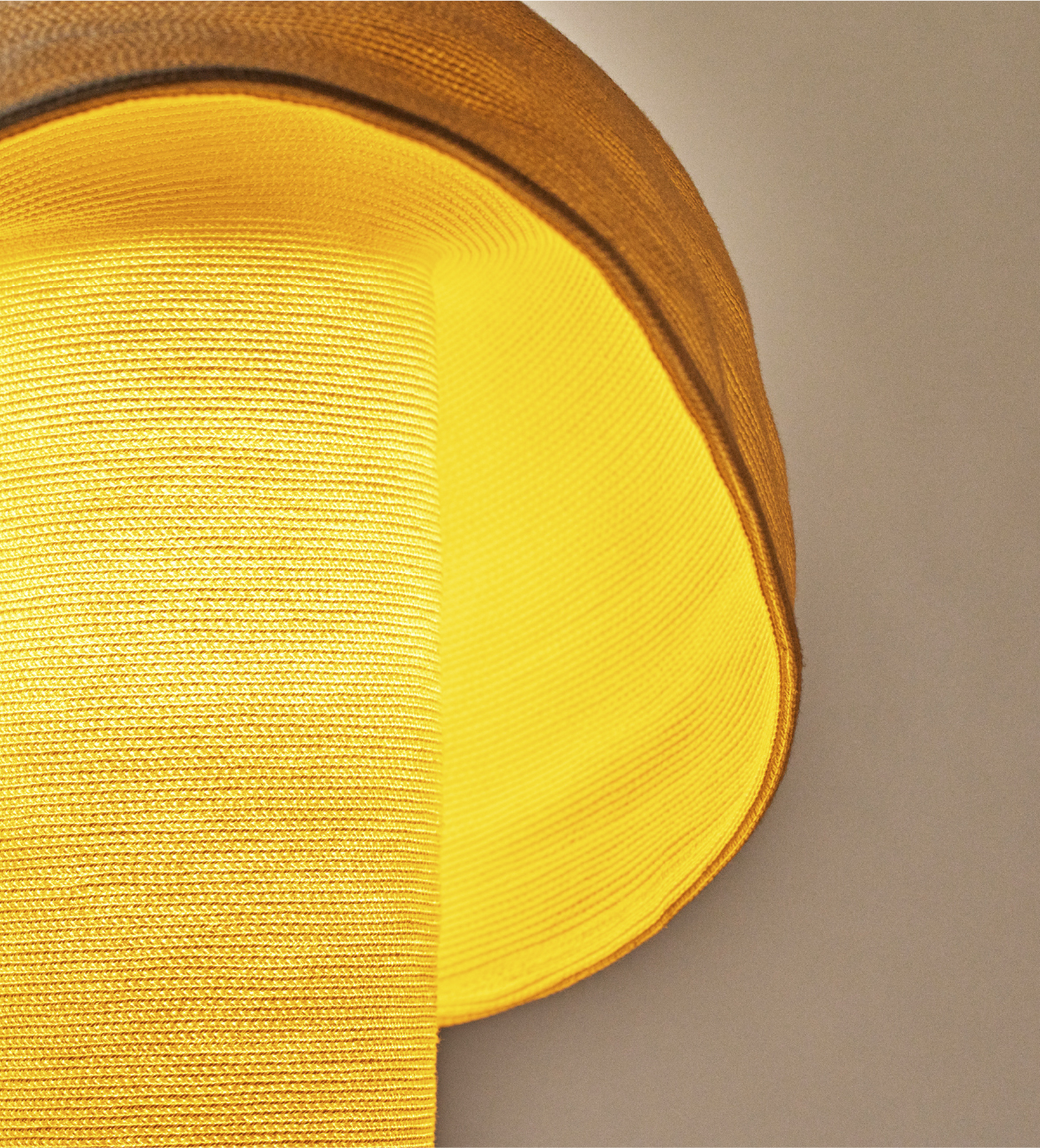 A table lamp design based on the theme of "adjusting the light." The pillars and shades are sewn together with a single string, and the seamless light gently colors the space. The single strand is a braid that was developed for these lamps. This braid, made of about 80% Japanese paper, has excellent transparency, and holds its form so that it can be molded into a variety of shapes. You can make adjustments to the light every day, by changing the shape of the base and the shade, as if you were styling your hair with moist feeling. And, don’t forget to enjoy the shadows, which can only be experienced when the lights are off.