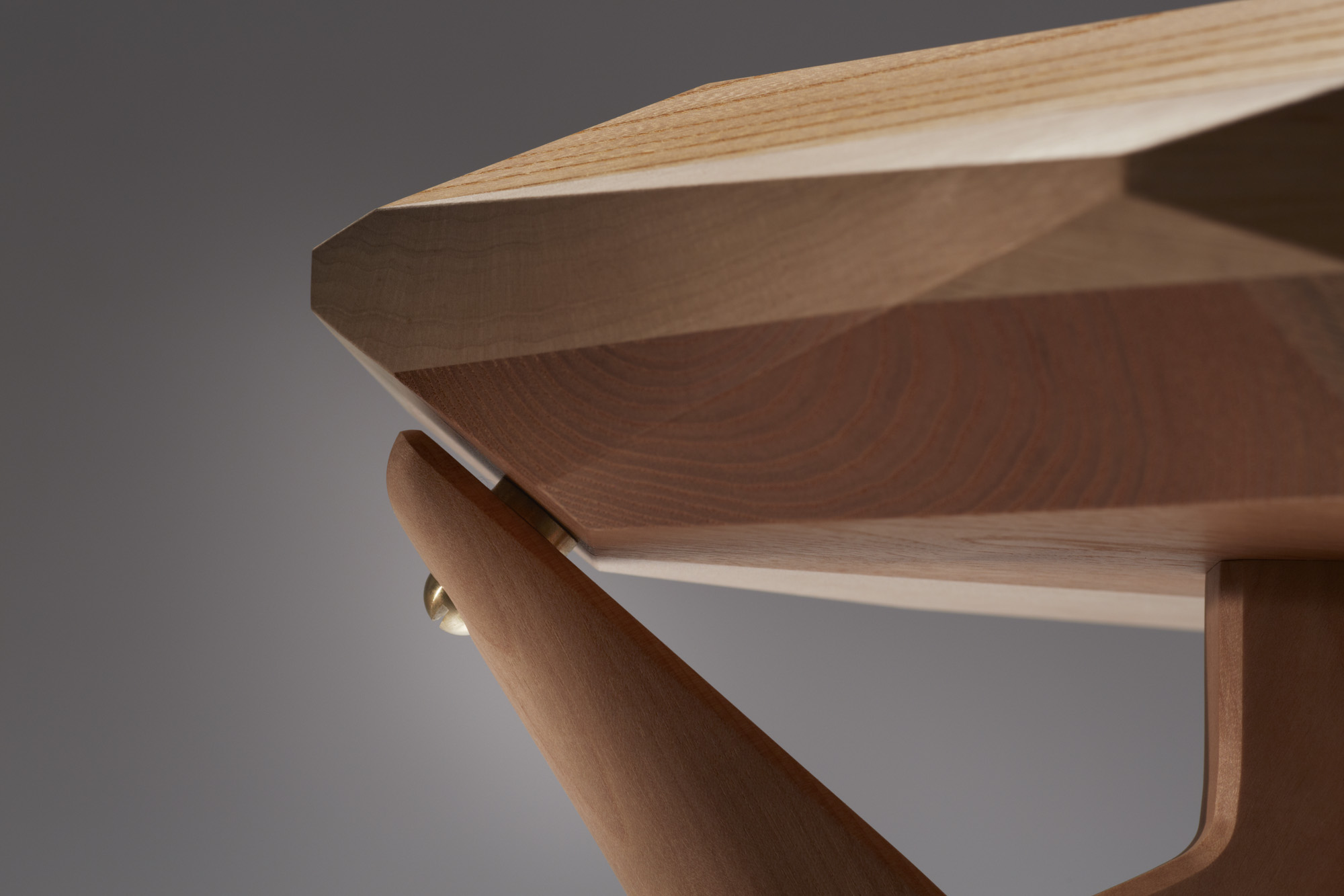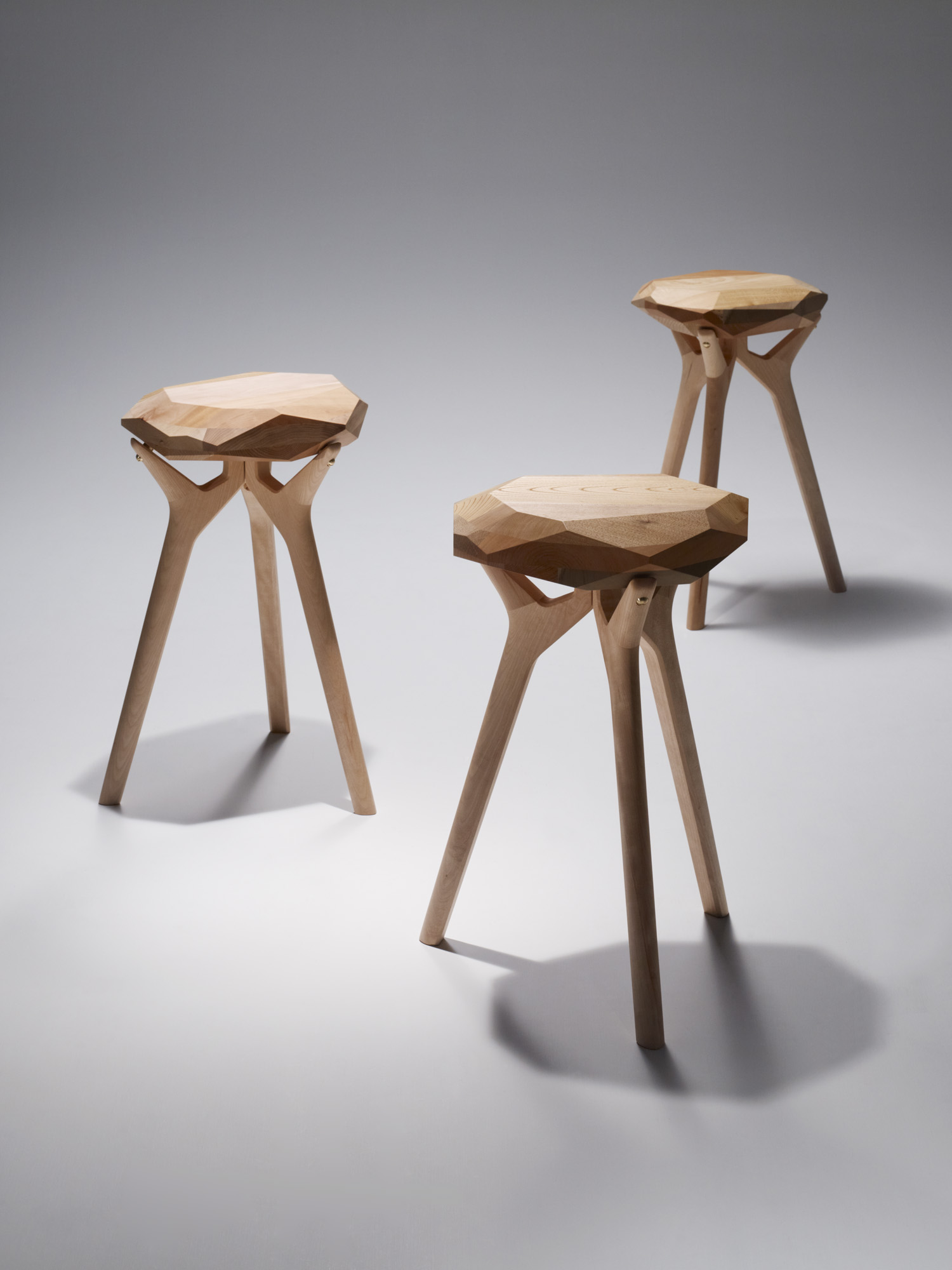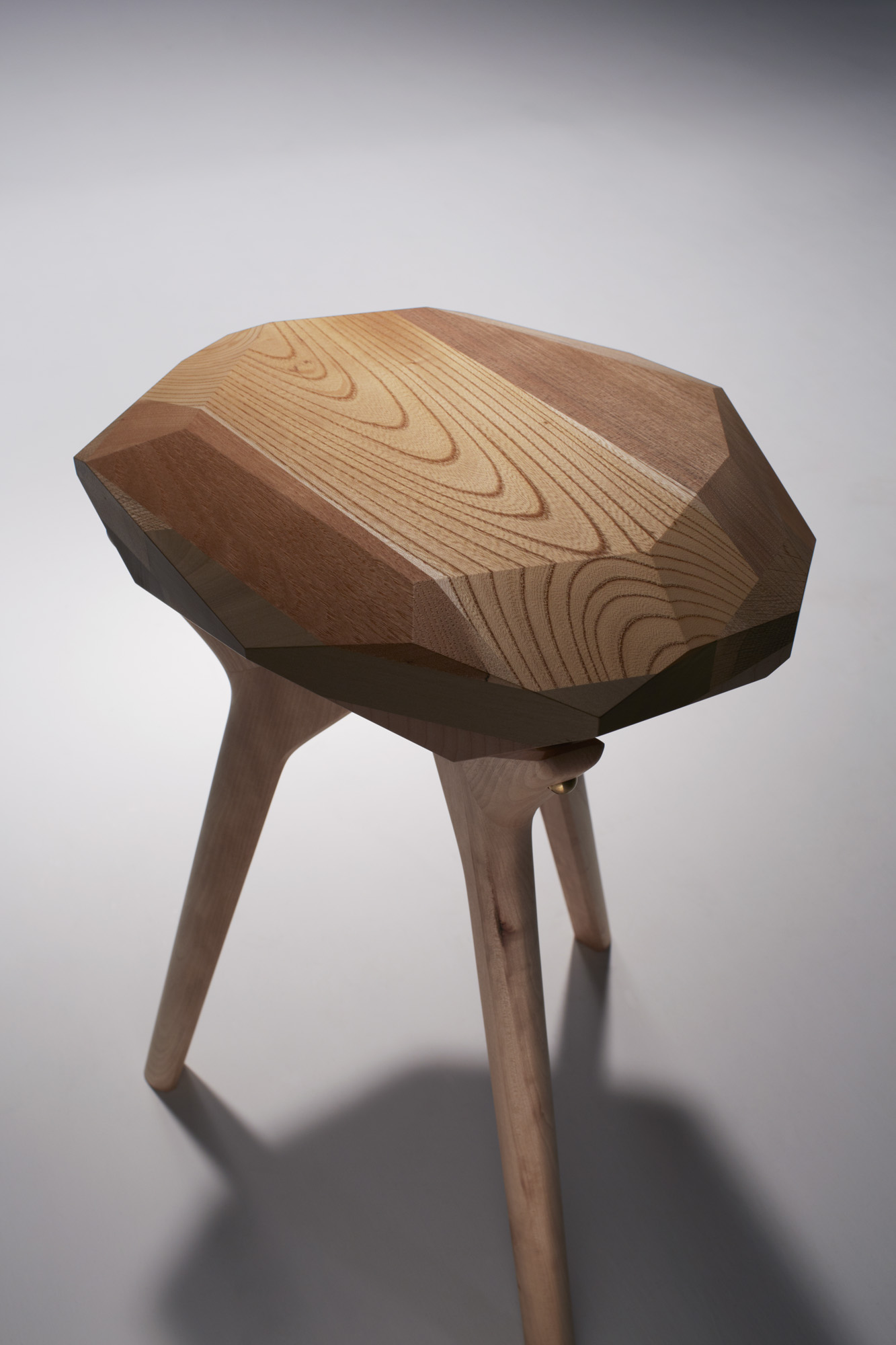 1脚1脚全く異なった表情を見せるリトスツール。木のダイヤモンドをイメージしカットの多様性と組み合わせることで、職人の木取りの妙と偶然がプラスされ木目の表情の豊かさを知ることができるスツールです。