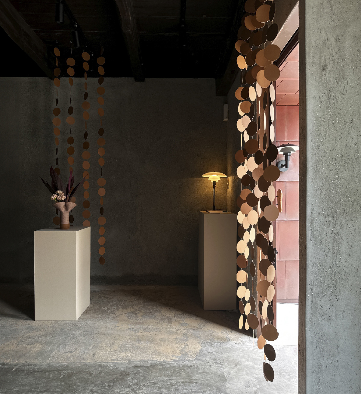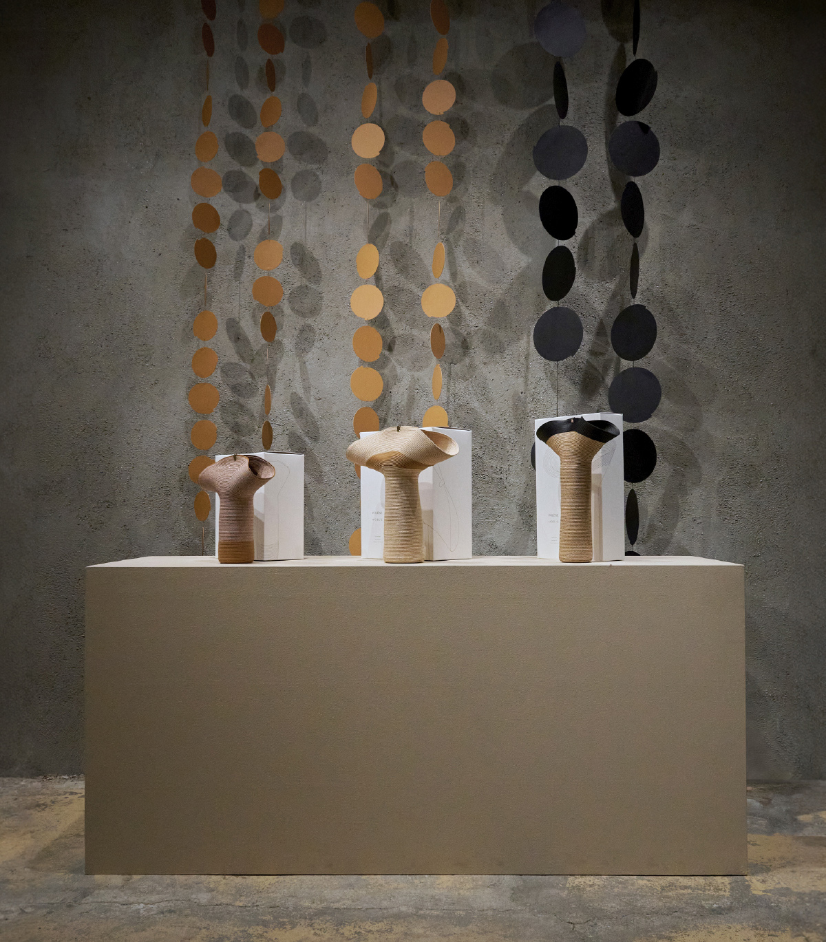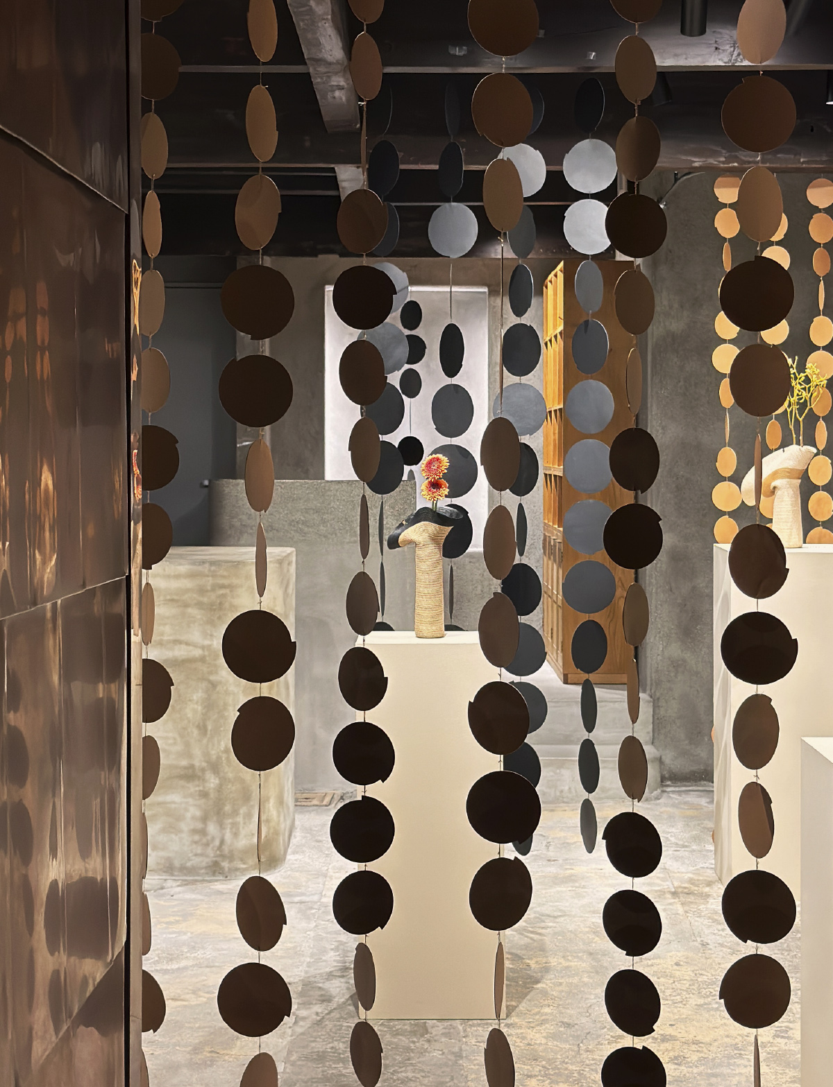 Since this collection was launched with upcycling as one of its themes, the leather scraps generated during the production process were further upcycled and used as leather partitions to create an eye-catching space, where you can also feel the scent of leather.